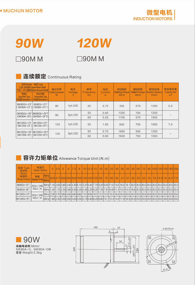 微型减速电机90W-120W尺寸图